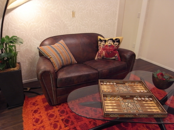 クラシックなソファに、ビートルズのクッションを合わせました。