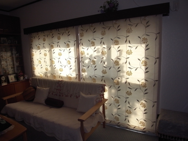 奥の薄い黄色のシャンタンのドレープが、手前の花柄レースが引き立たせ、すごく素敵です。