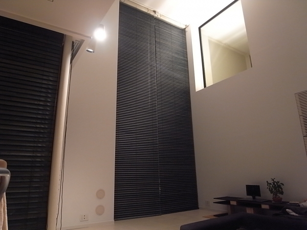 「5メートル」を超える高窓に、電動のウッドブラインドを取り付けました。